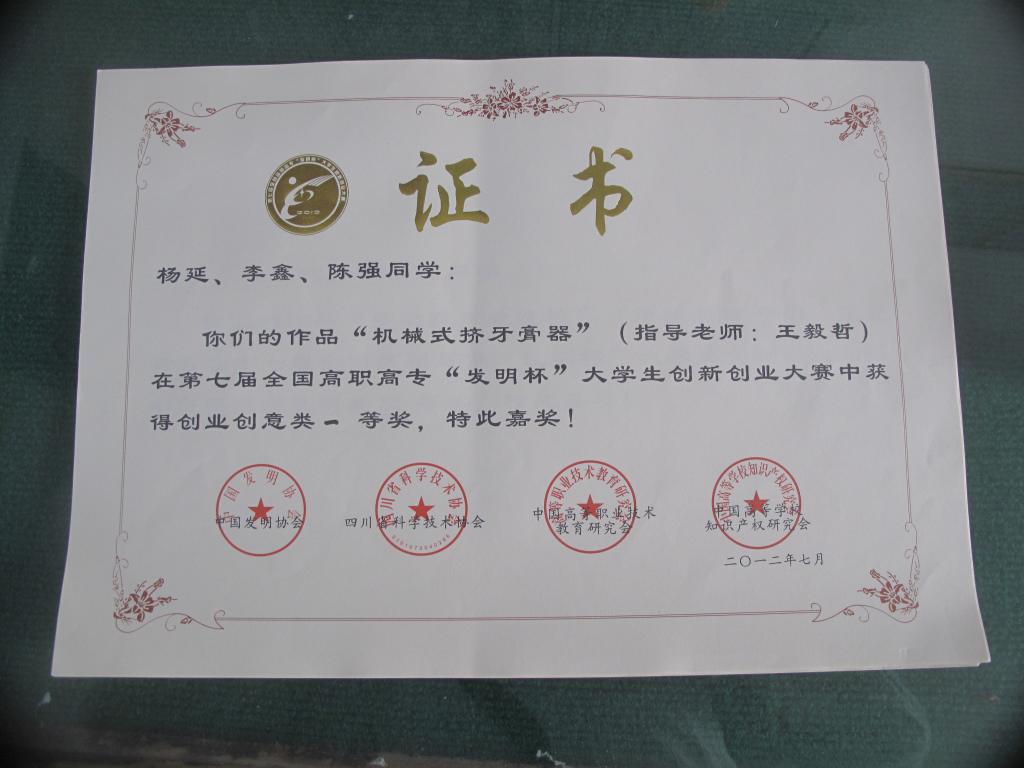 2012年第七届全国高职高专“发明杯”大学生创新创业大赛