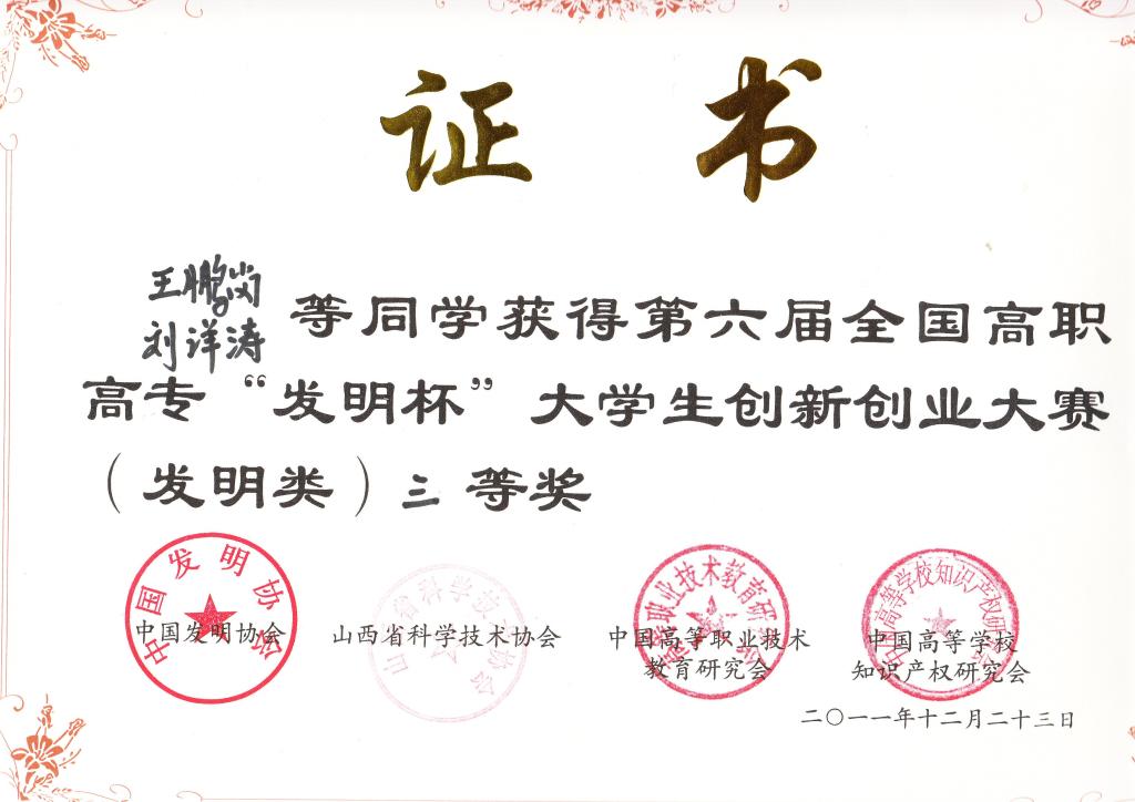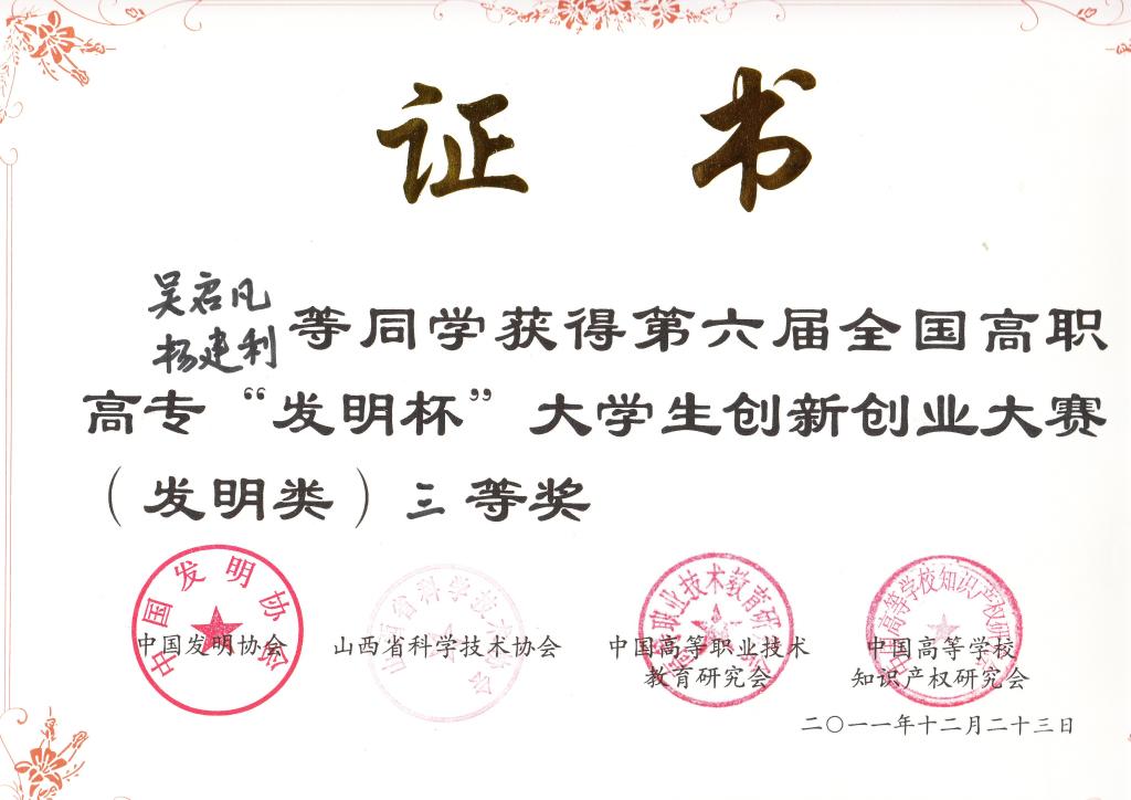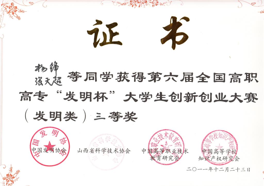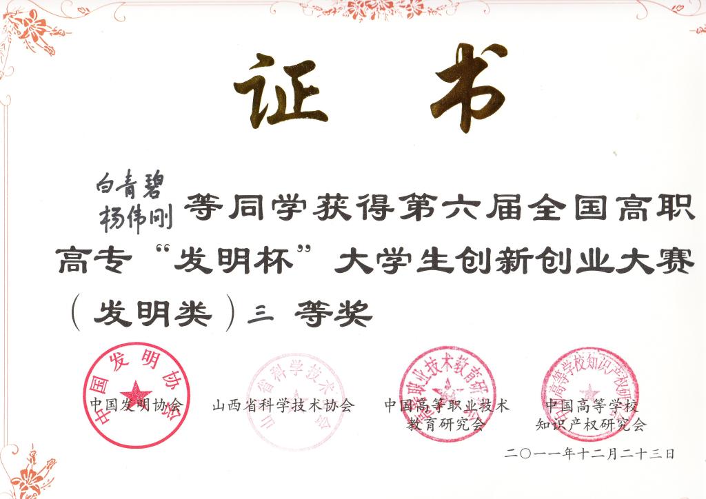 2011年第六届全国高职高专“发明杯”大学生创新创业大赛